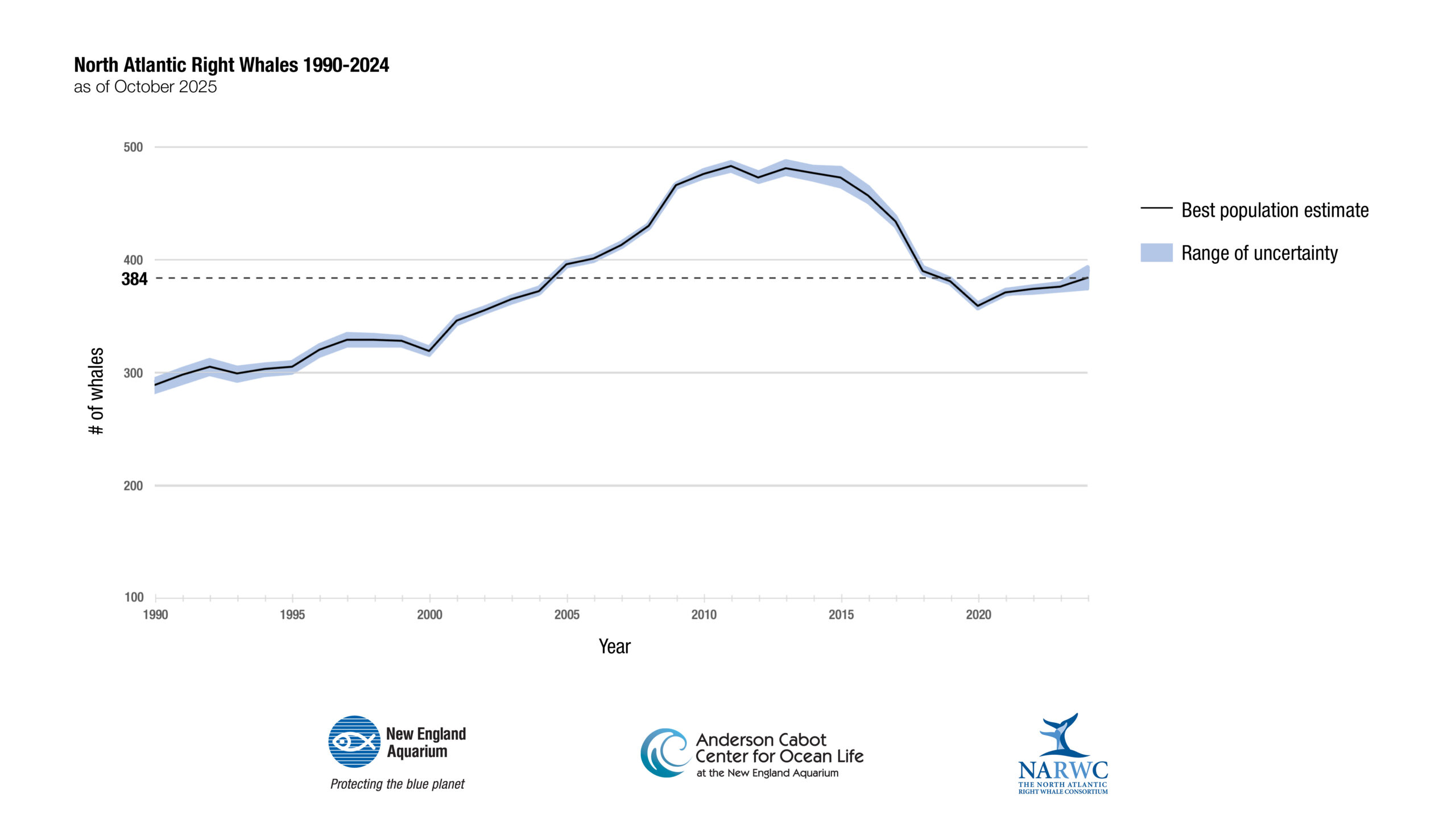 RW population numbers 1990-2024 NORTH ATLANTIC RIGHT WHALE POPULATION ESTIMATE 2024