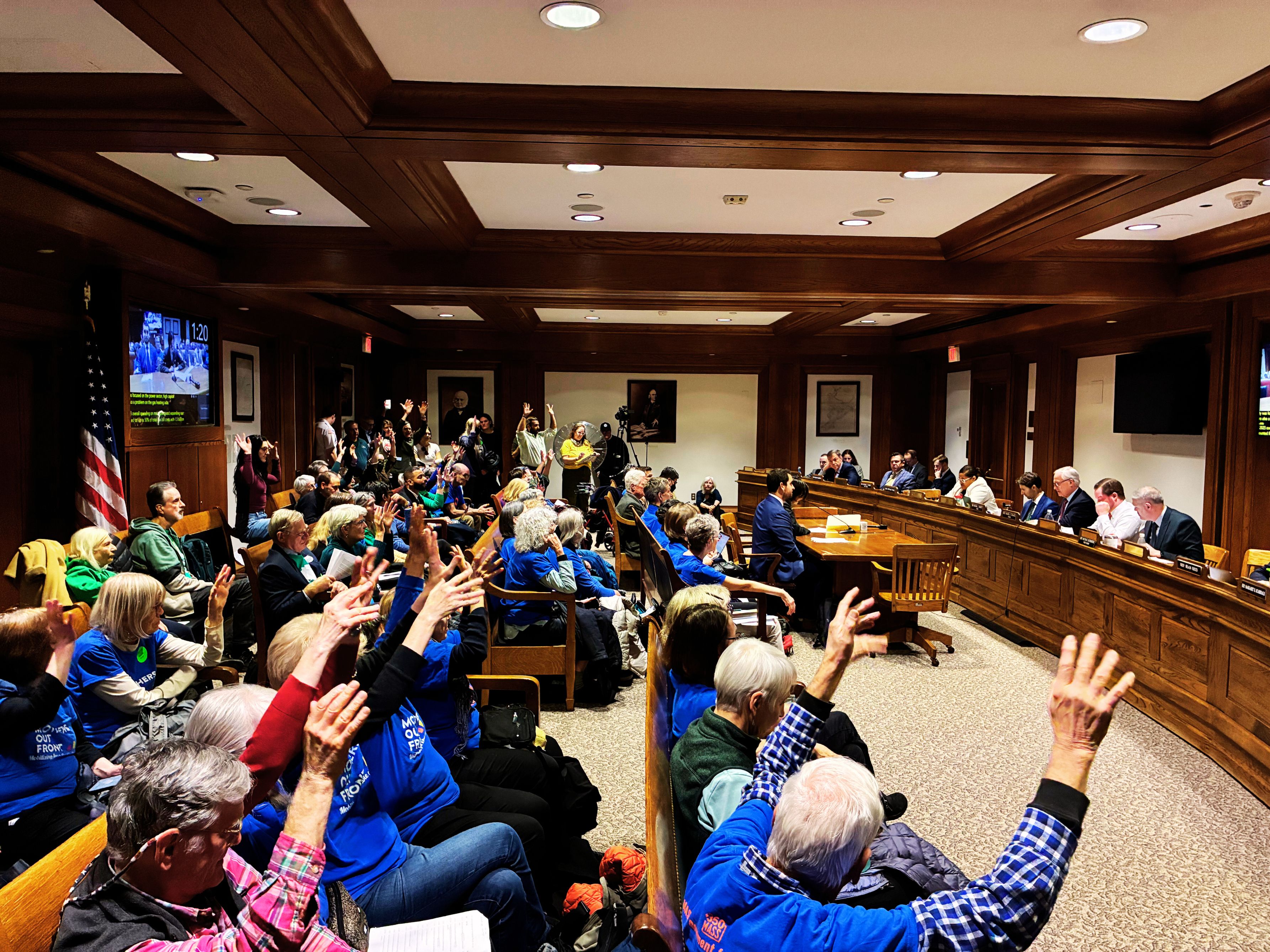 On Thursday, over 150 climate activists including 350 Mass members and allies packed the State House for the hearing on the People Over Energy Profits bill, H.3547/S.2290, that would prevent the expansion of big pipelines and power plants within 5 miles of an environmental justice community. It's rare to get an opportunity to criticize legislators to their face, but at the hearing advocate after advocate got a chance to tell the House chair just how bad his bill will be for our communities, our climate, and for its supposed goal of affordability. Eventually the chair simply left and gave up on chairing his own hearing!